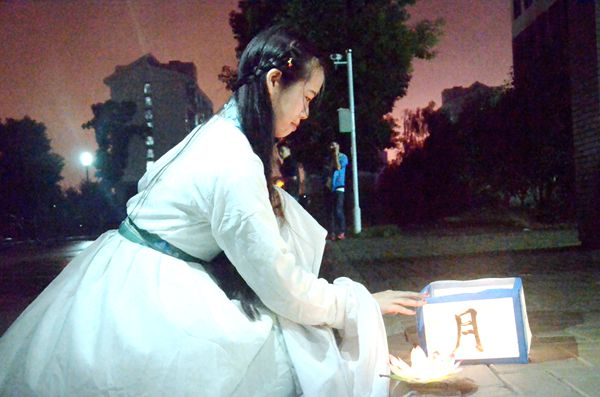 活动现场人头攒动,热闹非凡,极具华夏礼仪文化的传统汉服展现了赫赫威仪,翩翩神采。由汉宣社推出的具有浓郁古典气息的汉舞表演一出场便吸引了大量的观众注目,身着一袭丹青绿色的古代长袖舞衣,伴随着悠扬的歌曲翩翩起舞,袅袅如束丝的细腰舞动,宛若水波纹的长袖挥动着,刚柔兼济,尽展古代女子的婀娜妩媚。虽然细雨微朦,不见月光,但中秋团圆氛围感染了在场的学生。汉服拜月仪式,穿着汉服的司仪宣布拜月仪式开始,“主献”和“从献”各自入位,按着“通赞”的口令上香、祭酒,现场每个人都在非常认真地观看仪式。“很久没有看到用传统方式来传承弘扬传统文化,不负此行!”现场的一位同学说道。此外,书法传承着悠久的民族记忆,现场书写毛笔字的翰墨轩学生引得众多观众驻足欣赏,行云流水,洋洋洒洒的挥毫,令现场叹为观止。伴随着一张张笑靥,一声声笑语,中秋之夜活动在欢乐融融的气氛中圆满结束。