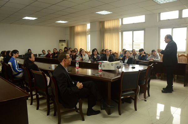 下午,代表团一行莅临外语系召开讲座。劳伦斯·塔玛提亚简单概述了查尔斯·达尔文大学整体发展情况。加里·弗莱就学校的发展历史、教学模式等进行详细地介绍,他通过图片展示了查尔斯·达尔文大学优美的校园环境,并分享了个人的兴趣目标和家庭生活趣事,幽默的语言和丰富的肢体动作激发了同学们的兴趣。此外,他详细讲解了近三十年澳大利亚政府在教育方面的改革措施,指出澳大利亚与中国的教育宗旨不谋而合。他强调查尔斯·达尔文大学十分重视学生学以致用的能力,主张教育要服务文化和社会,并表达了对合肥学院应用型人才培养模式的认可。