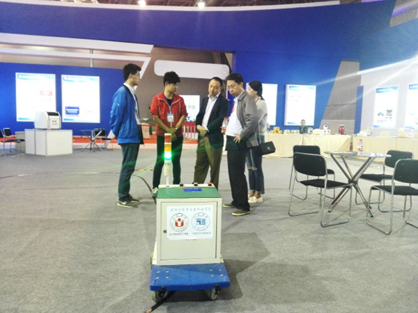 与此同时,电子系DZXFCL团队也参加了本次活动。由电子系大学生陈浩浩、柴华荣、王妍婷研发的产品“智能防雾霾过滤窗”也在本次活动中进行展示,该产品能够监测PM2.5数据值并且自身对雾霾加以过滤控制,时时将数据值传输到手机APP中,以此实现智能化远程控制,也因其多功能智能化的创新特质,该作品中国智能制造挑战赛华东一赛区中获得一等奖的优异成绩。陈浩浩表示希望能够通过参与本次“全国双创活动周”的机会进一步开拓眼界,能够有更多好的想法相互碰撞,以此激发出更多“双创”的火花。