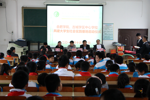 为了贯彻党中央、国务院关于加强农村留守儿童关爱的决策和部署,推动合肥学院大学生社会实践活动长效机制的建立,10月20日,合肥学院与肥东县古城学区中心学校共建大学生社会实践活动基地启动仪式于肥东县古城学区中心学校圆满举行。合肥市教育局、肥东团县委、合肥学院团委、肥东县古城学区中心学校相关负责人及古城学区中心学校百余名师生出席仪式。