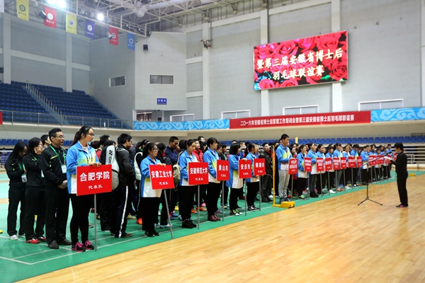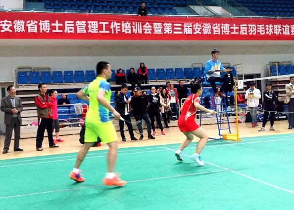 11月12日至13日,由安徽省人力资源和社会保障厅主办、合肥学院承办的“2016年安徽省博士后管理人员培训班暨第三届博士后羽毛球联谊赛”于我校体育馆隆重举行。国家人社部专技司博后处处长薛万里,安徽省人社厅专技处处长罗志年,副处长占家礼,合肥学院党委书记蔡敬民出席开幕式。来自全省18个博士后设站单位所在地市人社局、56家科研院所和企业工作站及其21支羽毛球代表队,230名博士后运动员参加了此次培训和赛事。