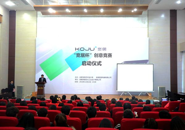 11月22日,合肥学院“第一届宽居杯创意竞赛”启动仪式在图书馆报告厅B厅顺利启动,活动由合肥学院艺术设计系主任谢海涛主持。合肥市经信委科技处处长项婷婷、安徽宽居集团总经理姚其林、张斌、合肥学院副校长刘建中,以及安徽宽居集团和我校相关部门负责人应邀参与此次活动。本次“宽居杯”创意竞赛活动由合肥学院艺术设计系和安徽宽居电器有限公司共同举办,主题包括产品设计、包装设计、产品命名、企业形象设计等,安徽宽居集团给予项目和技术支持,艺术设计系师生将参与竞赛。