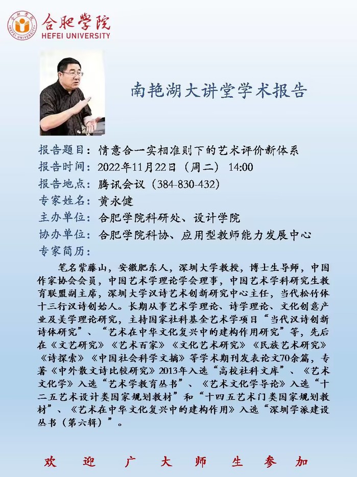 【讲座预告】情意合一实相准则下的艺术评价新体系