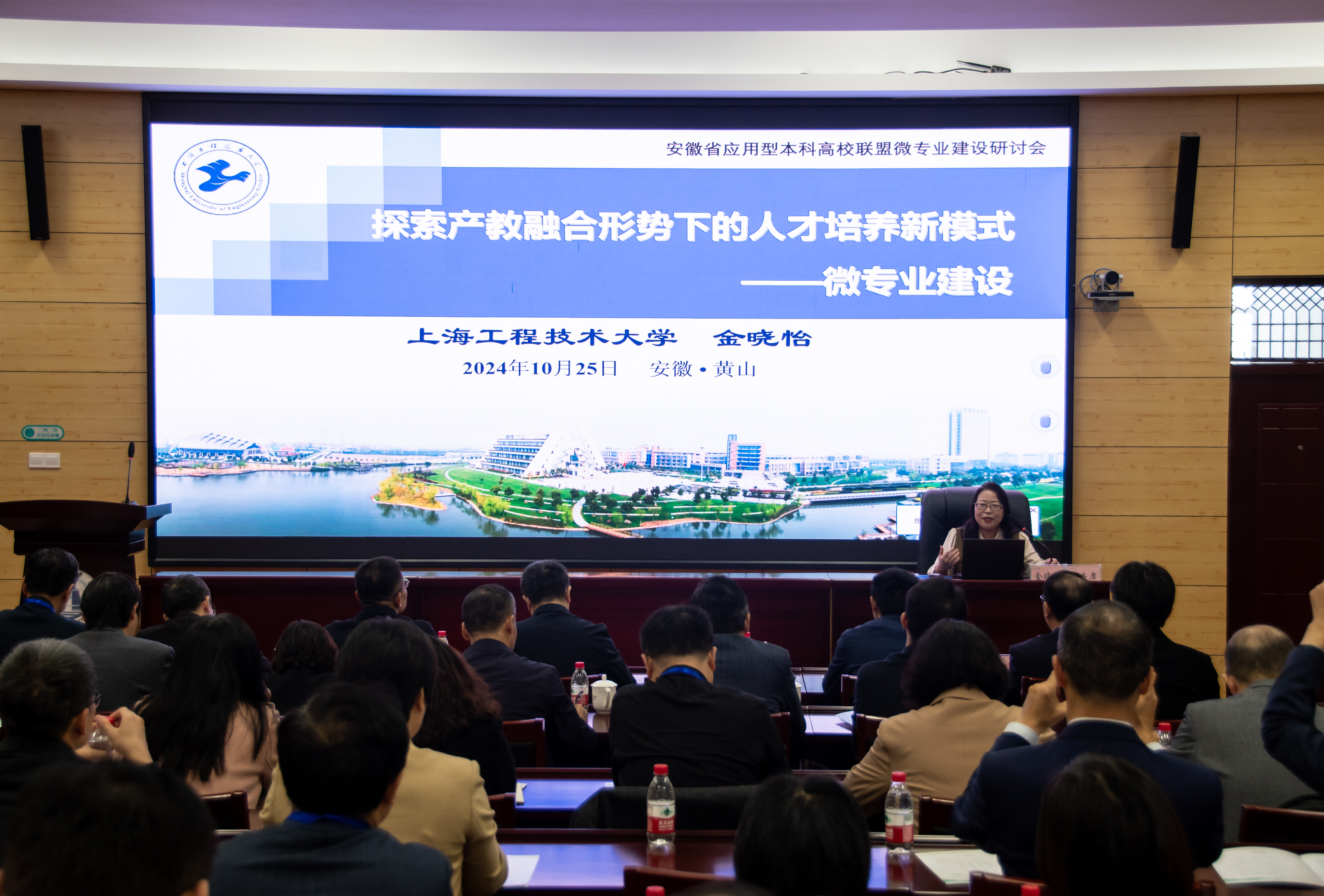 1025日,安徽省应用型本科高校联盟微专业建设研讨会在黄山学院成功召开,会议由安徽省应用型本科高校联盟主办,黄山学院、池州学院承办。省委教育工委委员、省教育厅副厅长储常连,黄山学院党委书记李铁范,黄山学院党委副书记、校长李庆宏,池州学院副校长吕刚等出席会议;省教育厅高教处负责同志,联盟及相关高校分管校领导、教务处长、微专业负责人等90余人参加会议。