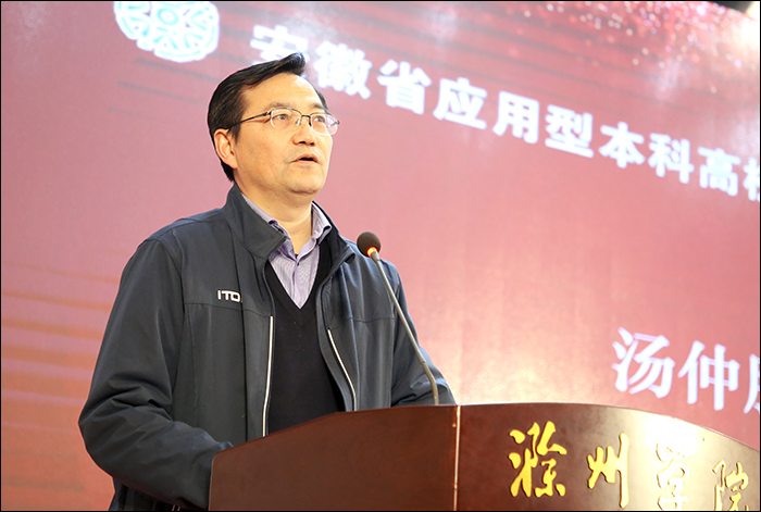 省教育厅高等教育处处长汤仲胜在会上致辞。他说,近年来,省教育厅紧紧围绕立德树人根本任务,大力推进应用性高等教育体系建设,走高等教育内涵式发展之路,不断提升高等教育质量。以省级质量工程建设为抓手,坚持目标导向和问题导向,积极推进信息技术与教育教学深度融合,引导和促进各高校打造“一流课程”,培养“一流人才”。举办此次比赛是积极响应陈宝生部长提出的“课堂革命”号召,是推进信息技术与教育教学深度融合、创新课堂教学的有益尝试。
