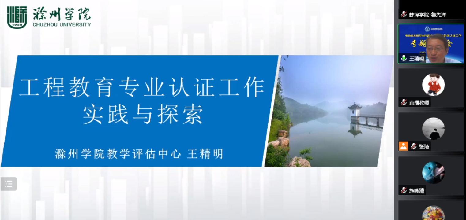 7月21日上午,由安徽省应用型本科高校联盟主办,安徽科技学院、安徽三联学院承办,超星尔雅集团安徽分公司协办的安徽省应用型本科高校联盟专业认证专题培训会成功举行。本次会议采用直播形式进行线上培训,来自安徽省应用型本科联盟24所高校负责专业认证工作的职能部门负责人及核心工作人员、相关专业负责人及骨干教师参会,在线参会人数为3809人。会议由安徽科技学院教务处处长赵伟峰主持。