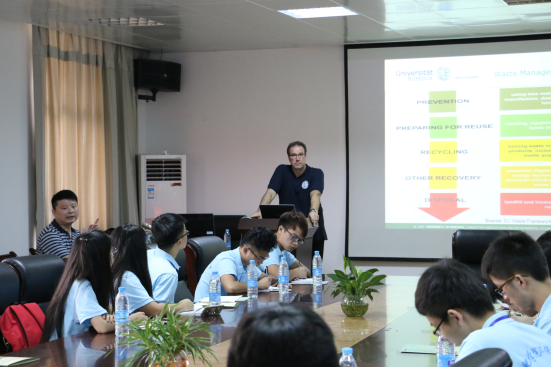 8月5日-9日,合肥学院成功举办首届暑期大学生环保夏令营,来自于安徽科技学院、蚌埠学院、黄山学院、皖西学院以及合肥学院环境工程等专业的23名营员参加夏令营活动。本次活动由合肥学院生物与环境工程系以及研究生处共同举办,并得到安徽省应用型本科高校联盟秘书处以及相关高校的大力支持。 此次夏令营活动持续五天,活动内容包括三个方面:(1)请国内外环境领域的专家作专题报告;(1)参观先进的环保企业、研究院所和实验室;(3)自选课题分组开展合作学习与研究。结合本次夏令营主题,特邀请中国国家友谊奖获得者、德国罗斯托克大学莱勒斯教授,安徽省环境保护厅殷福才副厅长,安徽合大环境检测有限公司韩蔚总经理,合肥学院科技处处长吴克教授和合肥学院生物与环境工程系主任俞志敏教授等环保领域国内外专家分别作了有关新环保法、德国固废处理方法和生物炭处理有机污染物、环保案例分析和安徽省环境污染防治与生态修复协同创新中心概况等精彩报告,每个报告都深入浅出的向营员们展示了专家们在这些领域的研究成果。