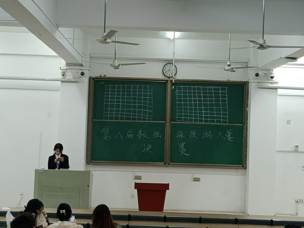 本次决赛形式新颖独特,由每队分别派出一人进行抽签,抽到相同数字的队伍同组比赛。前方黑板上为同组比赛的选手准备了两道相同的数独题,而后两组同时展开激烈角逐。