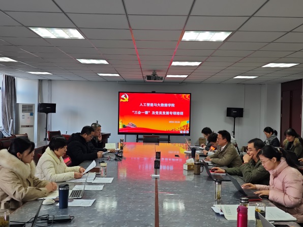 为提升党务工作效能,巩固党建根基,强化党员队伍素质,按照校党委组织部的部署安排,人工智能与大数据学院于12月24日上午举办了“三会一课”及党员发展工作业务知识专题培训会。学院党委委员、各党支部书记、支委成员及部分党员代表参加了此次培训会,会议由学院党委书记牛欣主持。