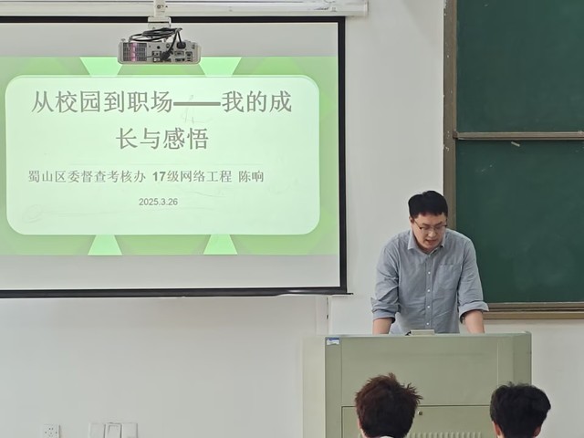 2025年3月26日中午12点50分,人工智能与大数据学院入团积极分子培训班开班仪式暨第三次青马班授课于36栋二楼阶梯教室成功举办。此次课程由王顺老师担任主持人,邀请了优秀毕业生陈响同学为同学们分享大学期间宝贵经验与感悟,为学生解答疑惑与迷茫的同时,进一步提升他们的品德修养。