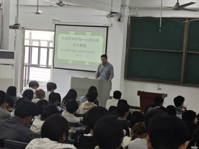 陈响学长从自身经历出发,回顾大学时光,畅谈有关学习和生活的经历与经验。他强调在专业课程学习上,同学们应突破课本知识的局限,实现理论与实践的深度融合。同时他分享了自己参与学院实验室项目开发时的经历,倡导通过实际操作提升解决问题的能力。在谈到考公心路历程时,陈响同学表示,考公不仅是对专业知识的考察,更是对个人综合素质的检验,鼓励同学们多和老师交流沟通,强化发现问题、解决问题的本领。