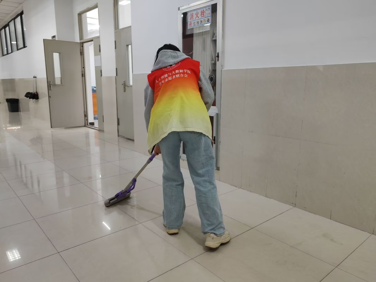 为了贯彻雷锋精神,共同营造干净美丽的校园环境,人工智能与大数据学院开展了“雷锋月”楼层打扫活动。这次活动不仅美化了同学们的学习环境,也是生动诠释了志愿服务精神和集体责任感。