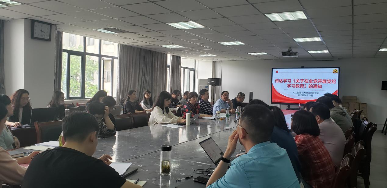 为进一步抓好党纪学习教育,人工智能与大数据学院党委于2024年4月16日在36栋305开展党纪学习教育动员会。院党委委员、班子成员、各支部书记、纪检委员、各系部负责人和科级以上干部参加会议,会议由学院党委书记牛欣主持。
