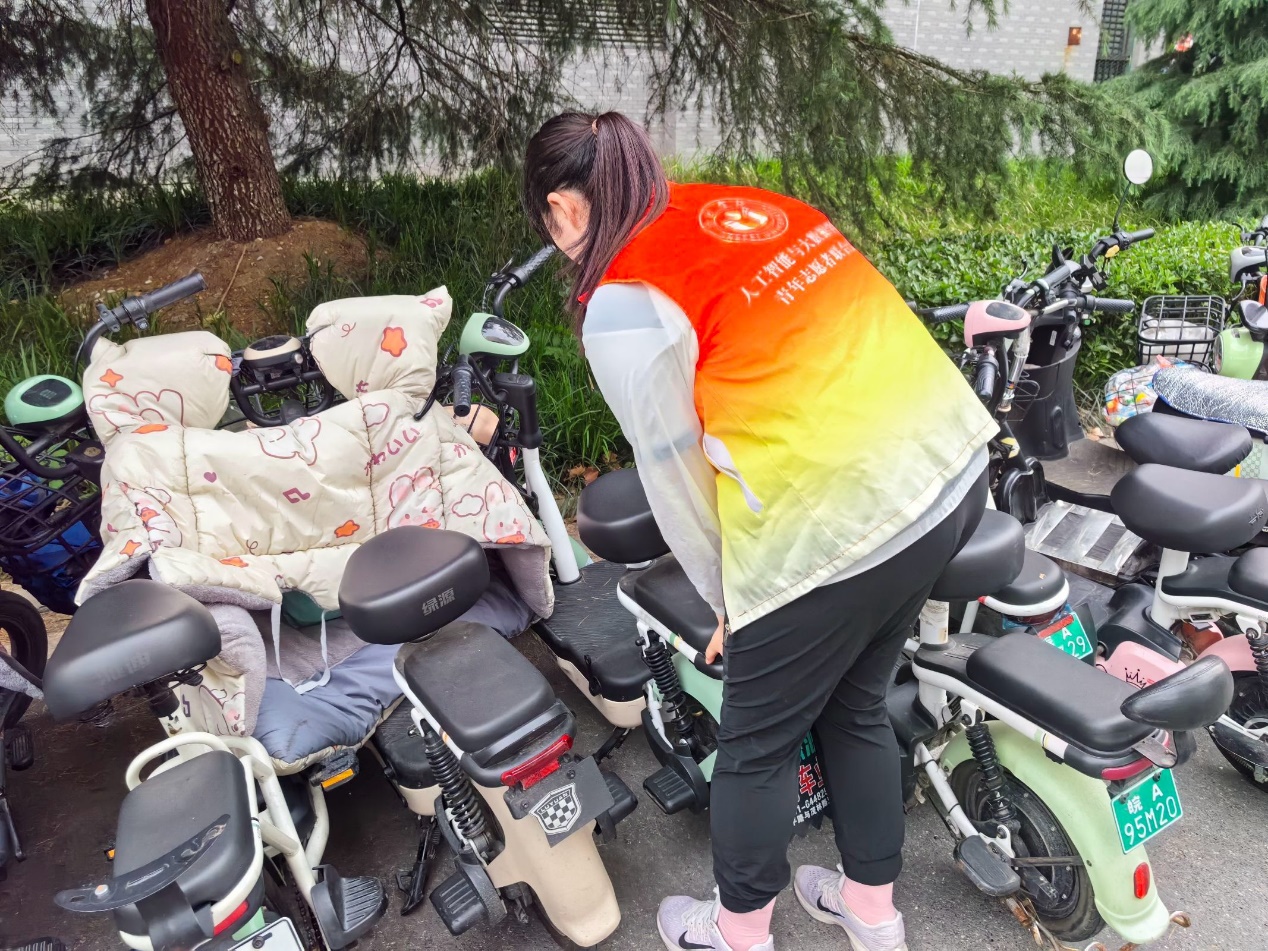 与此同时,志愿者们还投身于电动车规范停车的活动中。他们忙碌于校园内的停车区域,对乱停乱放的电动车进行细致的整理和摆放。在志愿者们的辛勤付出下,校园道路变得更加宽敞整洁,为师生们营造了更加舒适、安全的校园环境。