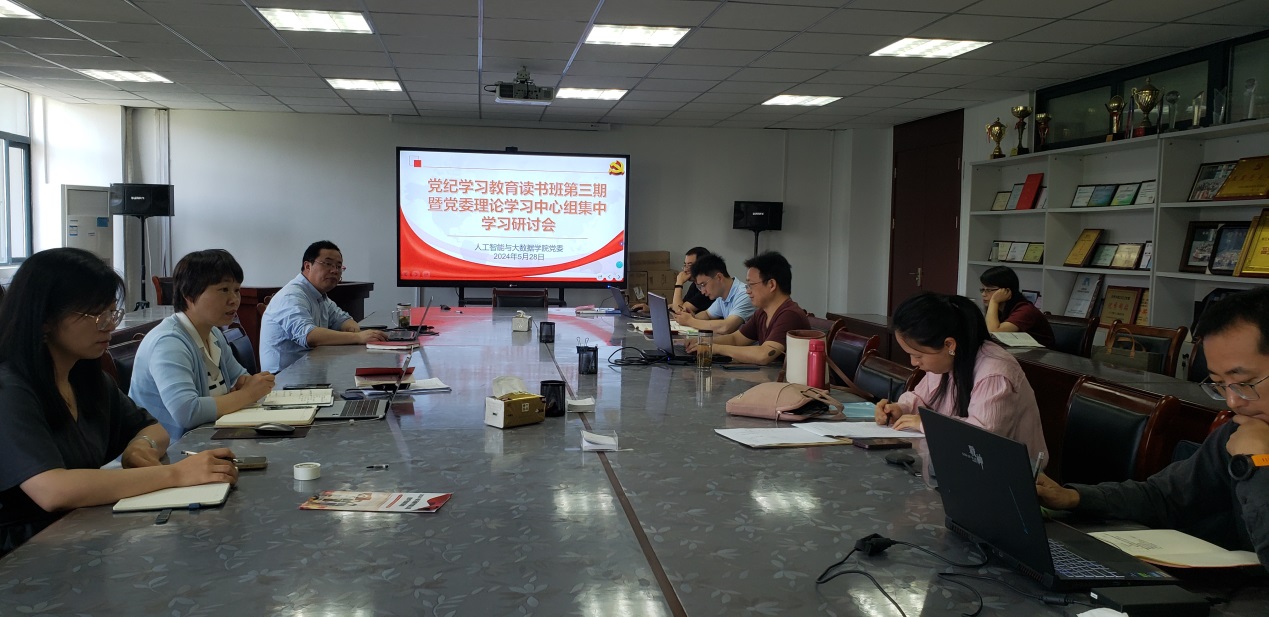 为深入学习贯彻修订后的《中国共产党纪律处分条例》(以下简称《条例》),2024528日上午,人工智能与大数据学院党委理论学习中心组全体成员在36305会议室举办党纪学习教育读书班第三期暨集中学习研讨会。学院党委书记牛欣主持会议,学院班子成员、党委委员、各支部书记及科级以上干部参加。