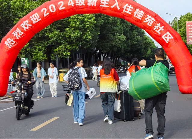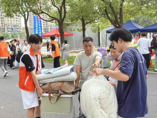 在迎新活动中,可以看到志愿者们以最高昂的热情为每一个新同学指引方向;也可以看到志愿者们毫不犹豫地接过每一个新同学的行李箱,肩扛手提、步履稳健地穿梭在校园各处,汗水浸透了他们的后背,却始终无法抹去他们脸上温暖的笑容。