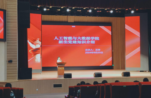 为进一步帮助和引导新生了解党的基本知识、基本理论和入党程序,增强党在青年学生中的吸引力和凝聚力,9月25日中午,人工智能与大数据学院在新大学生活动中心报告厅开展2024级新生入学教育。主讲人王琳老师为全体2024级新生介绍党建知识及党员发展基本程序。