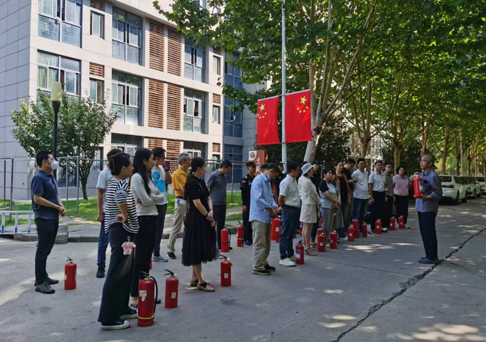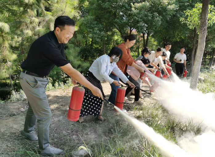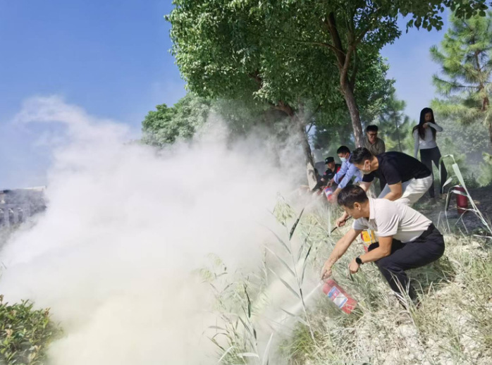 实验员们认真学习,积极参与实践操作,掌握了灭火器等器材的正确使用步骤。