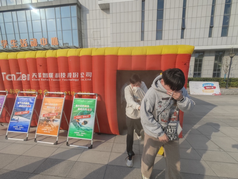 为切实加强师生员工的消防安全意识,普及火灾应急逃生知识,提升自救互救与应急处置能力,根据学校“消防安全宣传月”活动统一部署,11月13日下午,由保卫处、校团委联合校消防维保单位天泽智联科技股份公司共同组织的“消防逃生屋体验”活动在大学生活动中心南侧广场顺利举行。