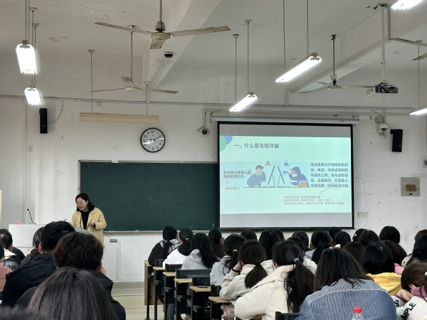 讲座上, 经管院教师通过网络短剧、警示宣传片进行讲解。以深入浅出的方式让学生了解电信网络诈骗,展示电信网络诈骗的相关手段以及防范措施。