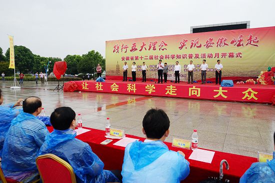 201696,省第十二届社会科学知识普及活动月开幕式在安庆市举行。活动由省社科联和安庆市人民政府共同举办,主题是“践行五大理念、实现安徽崛起”。省人大常委会副主任王翠凤出席开幕式并宣布活动月开幕。省委宣传部、省社科联、安庆市有关负责人,社会各界代表和群众近千人参加开幕式。开幕式上,省人大、省委宣传部、省社科联和安庆市有关负责人向全省社科普及先进单位代表颁奖,向来自基层的代表赠送社科普及读物,并向社科普及志愿者服务团授旗。活动现场开展了社会科学宣传普及、安徽人文讲坛专场报告、广场咨询和非物质文化遗产展示等活动。