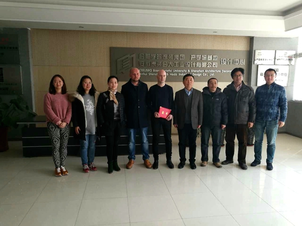 3月9日,德国教授杨·贝斯(Jan Bäse)一行受邀到合肥学院艺术设计设计系访问。系主任谢海涛教授及其他教师热情欢迎了贝斯教授的到来。谢主任首先带领贝斯教授参观了艺术设计系产学研中心,介绍了艺术设计系与德国合作办学的历史,取得的教学成果。
