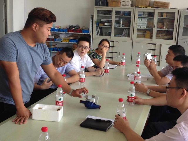 考察过程中,学院创业团队合七电子的学生就他们目前从事的电子科技业务向考察团进行了详细的介绍,其中包括已经研发成功的智能仓储系统、水表物联网应用技术、以及正在研发中的智能硬币分拣系统等。除此之外,创业学生也就自己暑期跑业务的经历和关于创业投资的观点进行了分享。