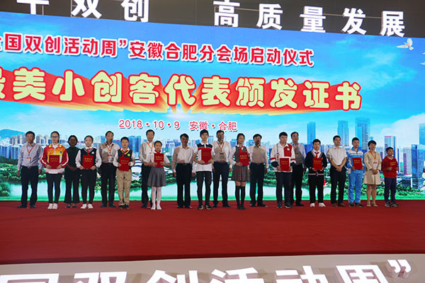 “全国双创活动周”合肥分会厂展区内,设有合肥综合性国家科学中心、国家级“双创”示范基地成果、“三重一创”成果、科技企业孵化器、众创空间、人工智能科技创新、现代农业“双创”成果、职工技术创新成果、人力资源服务产业创业成果、先进制造业成果等13个展区,通过图文与实物、静态与互动相结合的方式全面展示合肥市最新创新创业成果。开幕仪式上,现场还为2018年“创响中国”合肥创新创业大赛、“最美小创客”代表进行了颁奖。