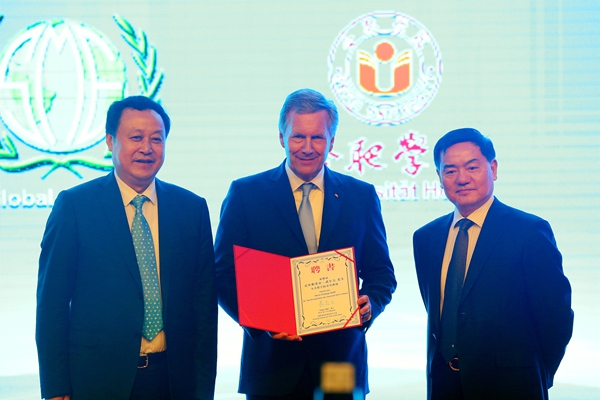 六月仲夏,万物繁盛,在这美好的季节,德国前总统、全球中小企业联盟全球主席克里斯蒂安·武尔夫第三次访问合肥学院,并受聘为合肥学院荣誉教授。