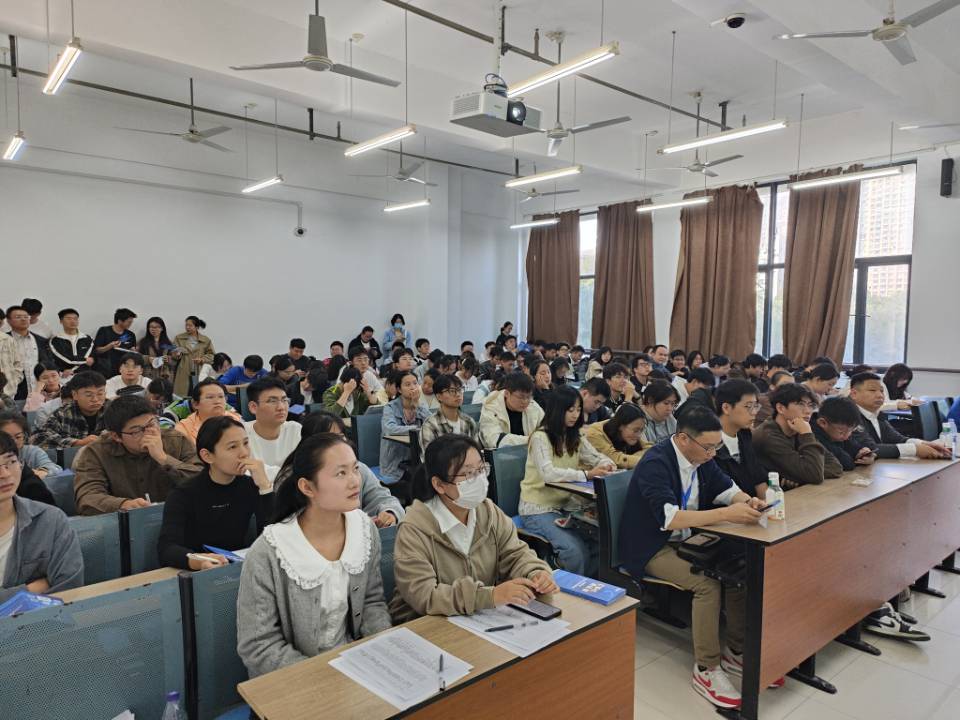 宣讲会上,企业负责人详细介绍了集团发展概况,简要介绍了总公司的基本情况,围绕此次招聘岗位、需求专业、岗位职责与要求、薪资待遇等方面进行了重点宣讲。宣讲结束,现场进行了互动环节,同学们针对工作时间安排、食宿安排以及晋升发展通道等问题进行了交流答疑,现场气氛热烈。