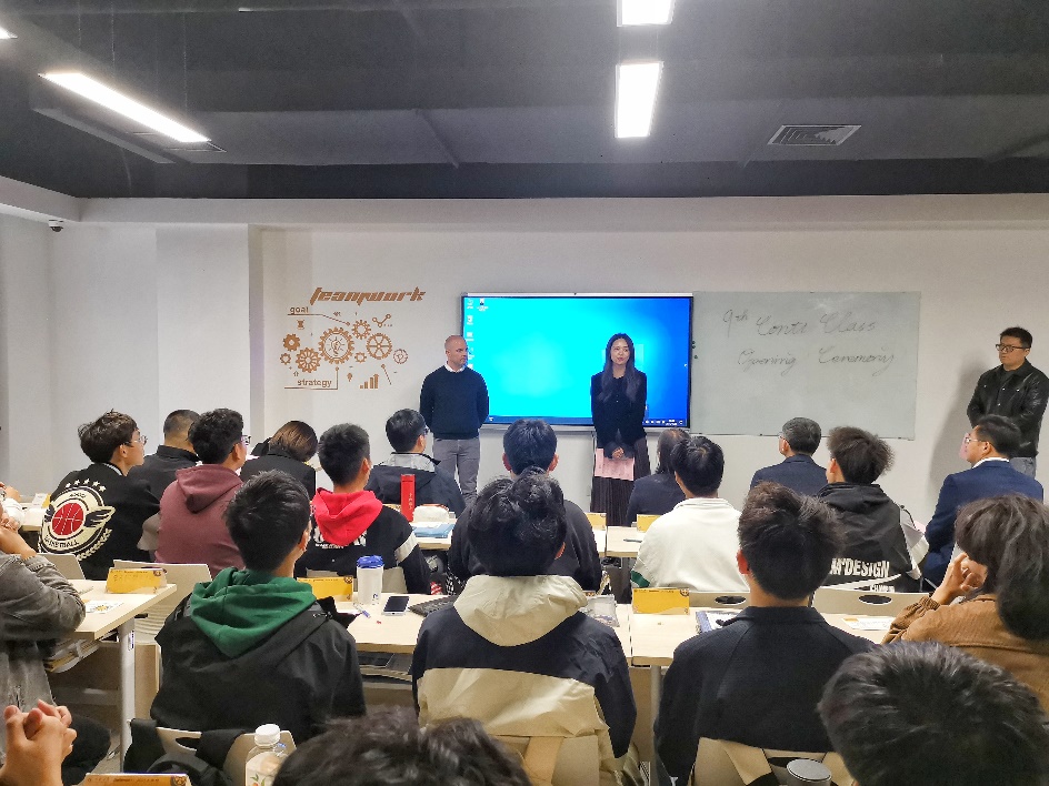 20241030日,2024级(第九届)大陆班开班仪式在中德合作创新园大陆班专用教室顺利举办。国际交流合作处处长张慧,先进制造工程学院党委书记杜娟,先进制造工程学院院长胡学友、副院长胡国华和智能制造系主任谷曼参加开班仪式。大陆马牌轮胎(中国)有限公司人力资源总监Alexis Gross,雇主与品牌经理李媛媛、公用工程部主管汪鑫应邀出席。