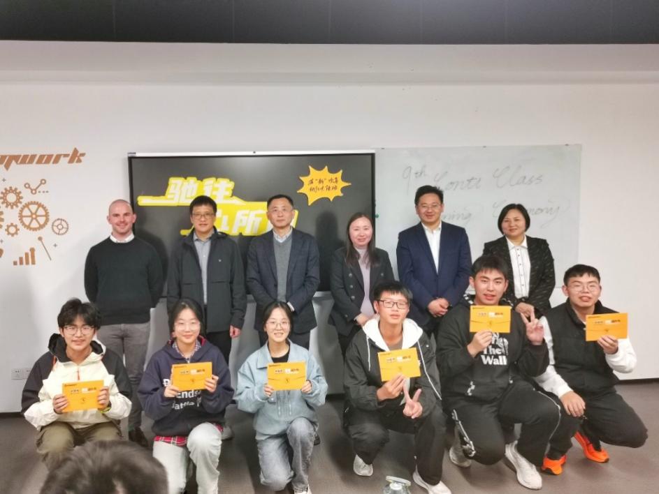 随后在场的各位领导共同向2024级大陆班同学代表颁发了特制的大陆班录取通知书。Alexis表示:“大陆班每一阶段的安排清晰明确,在学校学习理论,在工厂进行实际操作,理论、实践互相验证” ,并表示“这个由三方共同合作的优秀的合作项目会越来越好,最后祝福了大陆班同学,要全力拼搏,努力学习,好好成长。