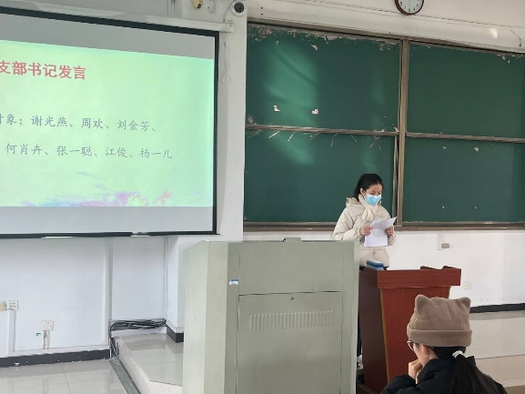 院党委副书记蔡灵美老师讲话,她向全体党员提出明确要求,强调党支部全体党员应时刻保持高度自律性,在广大同学中充分彰显党员先进性,积极发挥党员先锋模范带头作用,以实际行动为党的事业增光添彩,为同学们树立良好榜样。