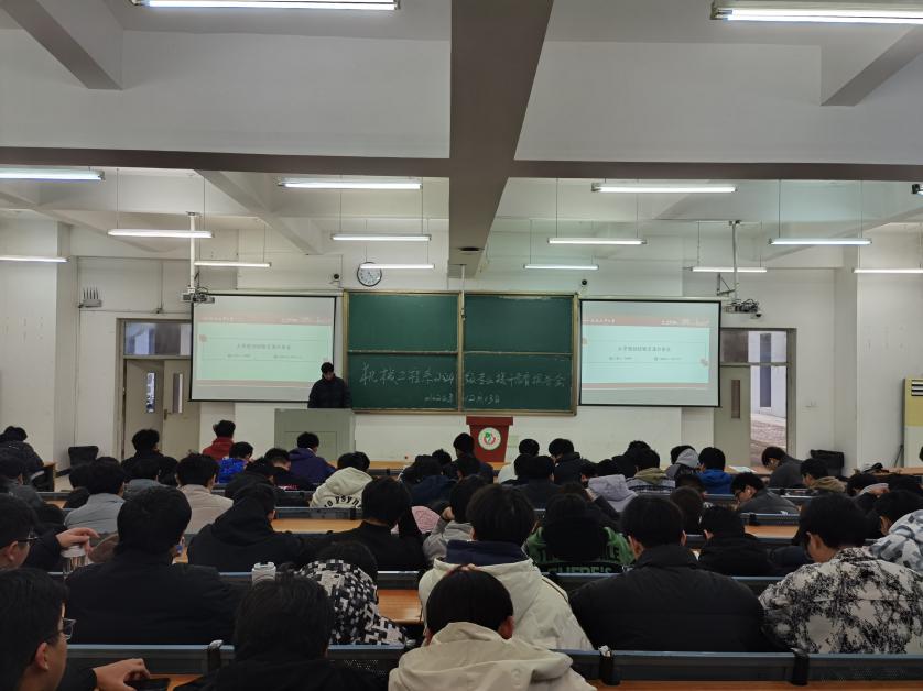 学院党委副书记蔡灵美、机制专业负责人胡正东、辅导员威力旺、智能制造工程系相关老师与机制、机电专业24级5个班170余名同学们一同参与这场知识与经验的盛宴。机械系主任吴其林为分享会拉开序幕,在开场中强调了专业认知对学生成长和学院专业建设的重要性,鼓励同学们积极与校友交流,汲取经验。