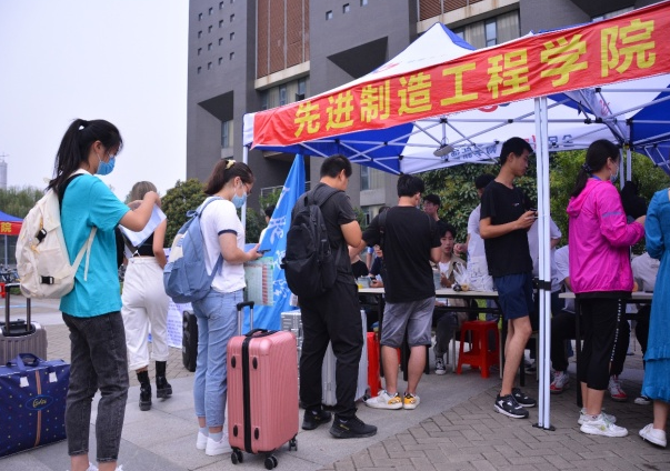 因疫情的特殊原因,我校坚持做到绿码通行,禁止学生家长入校,以确保疫情期间学生的生命安全。同时先进制造工程学院还组织了一批迎新志愿者,合理的分配任务,以便更加有效的进行新生的迎新工作。在入校方面,志愿者们积极地从新生家长手中接过行李箱,带领着新生到达各班级助理前办理好入学手续,然后帮助新生领取生活用品与军训服装,并将新生送至寝室,维持整个迎新现场的秩序。