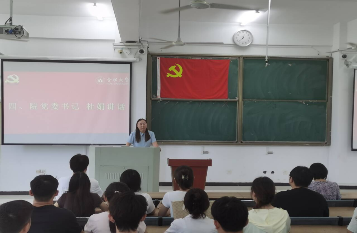 接着,杜娟代表学院党委向新入党的同志表示热烈祝贺。她指出,入党宣誓是一名党员政治生涯崭新的起点,希望全体新党员始终以党员标准严格要求自己,在思想、学习、实践、就业帮扶、联系群众和作风等方面不断发挥先锋模范作用,展现出新时代党员的卓越风采,用实际行动诠释共产党员的责任与担当。