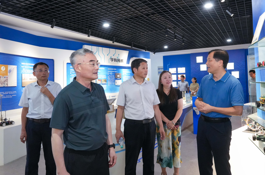 邬平川察看了电子爱好者协会学生科创竞赛开展情况,听取了电子爱好者协会比赛成果和创新模式、全国电子设计竞赛备赛状态、全国大学生智能车竞赛赛事准备等情况介绍,详细了解了暑期集训、参赛备赛情况及学习生活情况,观摩了备赛学生现场演示智能车赛道竞逐。