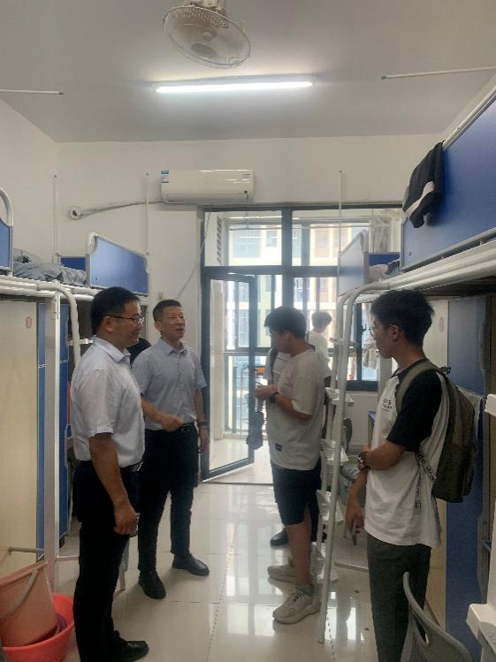 你家是哪的?”“寝室住得适应吗?”宣书记热心询问新生的具体情况,与新生和家长进行了亲切的交谈。兰苑宿舍经过夏天的改造,面貌焕然一新。每到一处,宣书记都会叮嘱新生注意开窗通风,提防上门推销行为。对于新生家长提出的问题,宣书记耐心解答,并主动联系楼栋工作人员帮助解决。胡国华副院长向同学们分享了他在兰苑宿舍居住的经历,鼓励新生在更好的生活条件下,要以更加积极的态度投入到学习生活中。蔡灵美副书记了解了新生的学习设备是否齐全,鼓励他们养成良好的作息习惯和兴趣爱好,并注重对于人际交往能力的培养。
