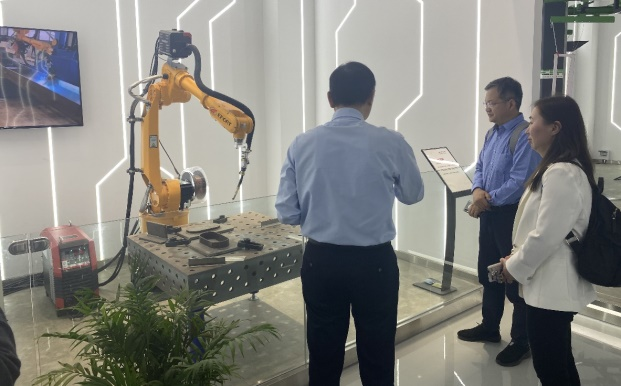 5月20日下午,杜娟书记带队一行在埃夫特智能装备股份有限公司工作人员的陪同下参观调研了埃夫特智能装备股份有限公司,张帷总经理陪同参观了公司的展厅,并介绍了公司发展历程、机器人产业应用和跨行业智能制造解决方案及该公司的人才需求情况。随后在座谈会上,许礼进董事长对调研组的到来表示热烈欢迎,并进行了双方产学研合作进行了洽谈,重点探讨了企业与学校的人才培养以及科研合作。