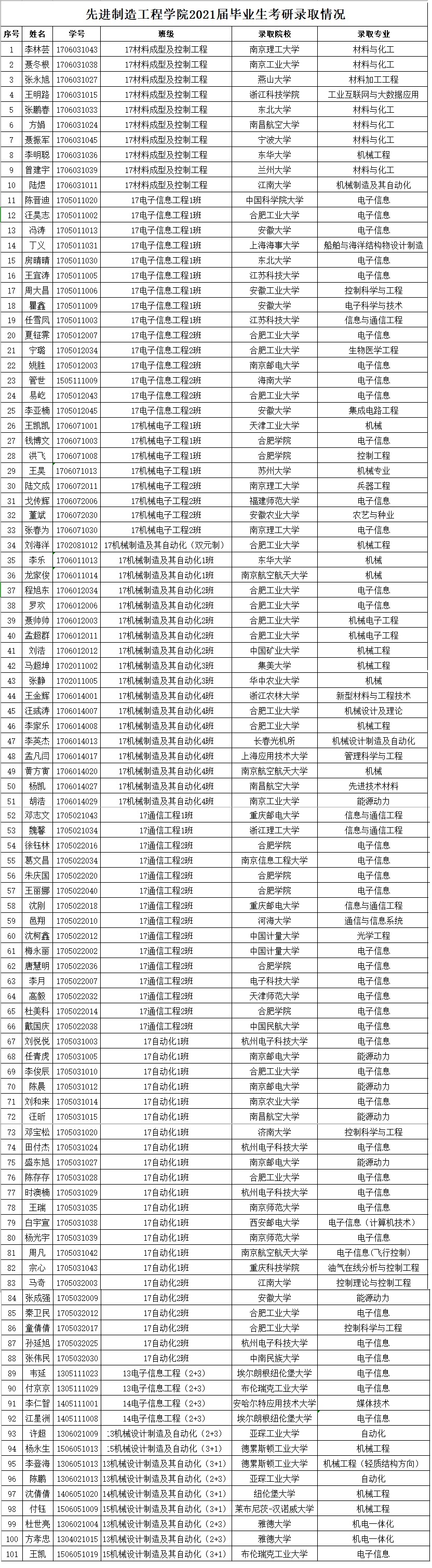 先进制造工程学院2021届毕业生考研情况