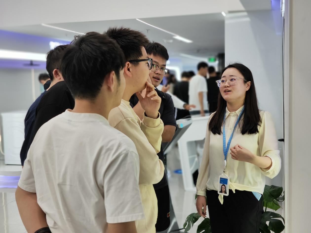 随后,师生们来到中安创谷展厅,深刻感受了天地一体化向6G时代迈进、工业相机突破行业难点、量子计算机横空出世、国产CPU性能强劲等发展成果。在中安创谷科技园里,一批富有科幻场景的未来产业正在科技进步、人才集聚和科技金融支持下,迸发出新质生产力的生机和活力。目前园区已经集聚了超700家科技型企业,涌现了一批代表着新质生产力的优秀企业。