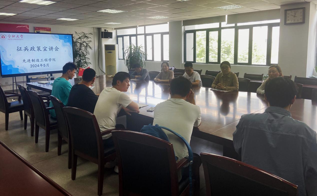 为做好2024年征兵工作,鼓励更多的优秀大学生到部队建功立业,2023517日,先进制造工程学院邀请校党委武装部国防动员科科长郑国平于38305会议室召开2024届毕业生征兵政策宣讲会。先进制造工程学院党委书记杜娟、党委副书记蔡灵美、毕业班辅导员及部分毕业生参加本次宣讲会。