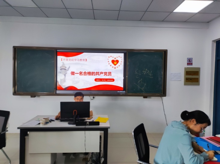 为学习贯彻习近平新时代中国特色社会主义思想,推进党纪学习教育,电子信息工程系教工党支部不断深化《中国共产党纪律处分条例》学习。2024521日在38608室,电子信息工程系教工党支部书记张胜同志以“做一名合格的共产党员”为主题讲党课,号召支部党员以优秀为榜样,做一名合格的共产党员。