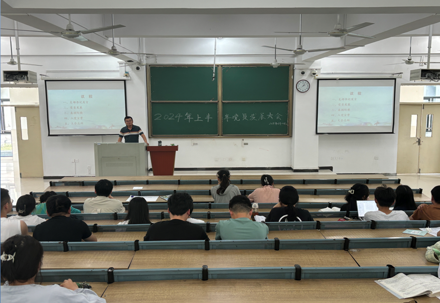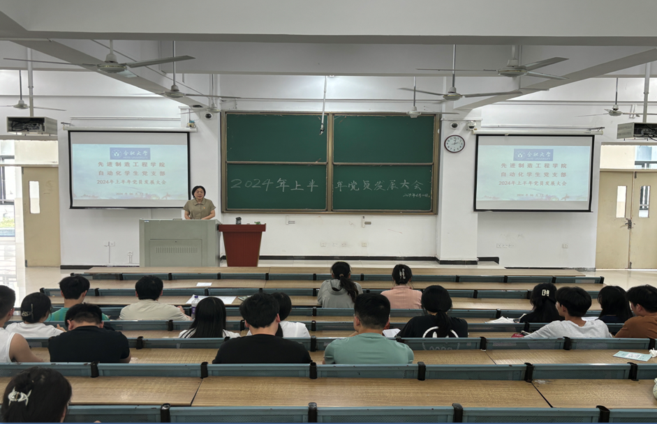先进制造工程学院自动化学生党支部2024年上半年党员发展大会于612日在382阶梯教室举行,学院党委副书记蔡灵美、支部书记梅志强、全体党员及群众代表参加此次会议。