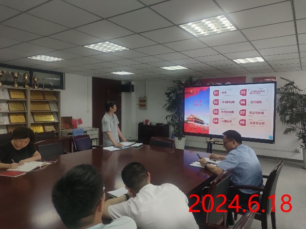 孙强书记介绍了《中国共产党纪律处分条例》(以下简称《条例》)制定的目的、依据、《条例》的修订过程,带领大家学习了2023年版条例的主要内容与结构、指导原则、意义与作用、作为高校教师党员应该怎么做,从八个方面做了全面深刻的阐述,使支部党员受到了一次党纪学习的深刻教育。