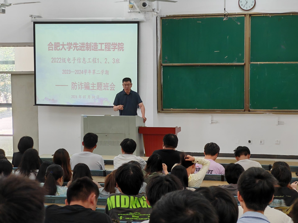 为进一步增强学生的安全防范意识,提高识别和应对诈骗犯罪的能力,74日上午,先进制造工程学院举办了“绷紧防范之弦,远离诈骗之害”主题防诈骗宣讲班会。学院领导老师、保卫处、学生处及锦绣派出所民警等出席,辅导员梅志强主持会议。