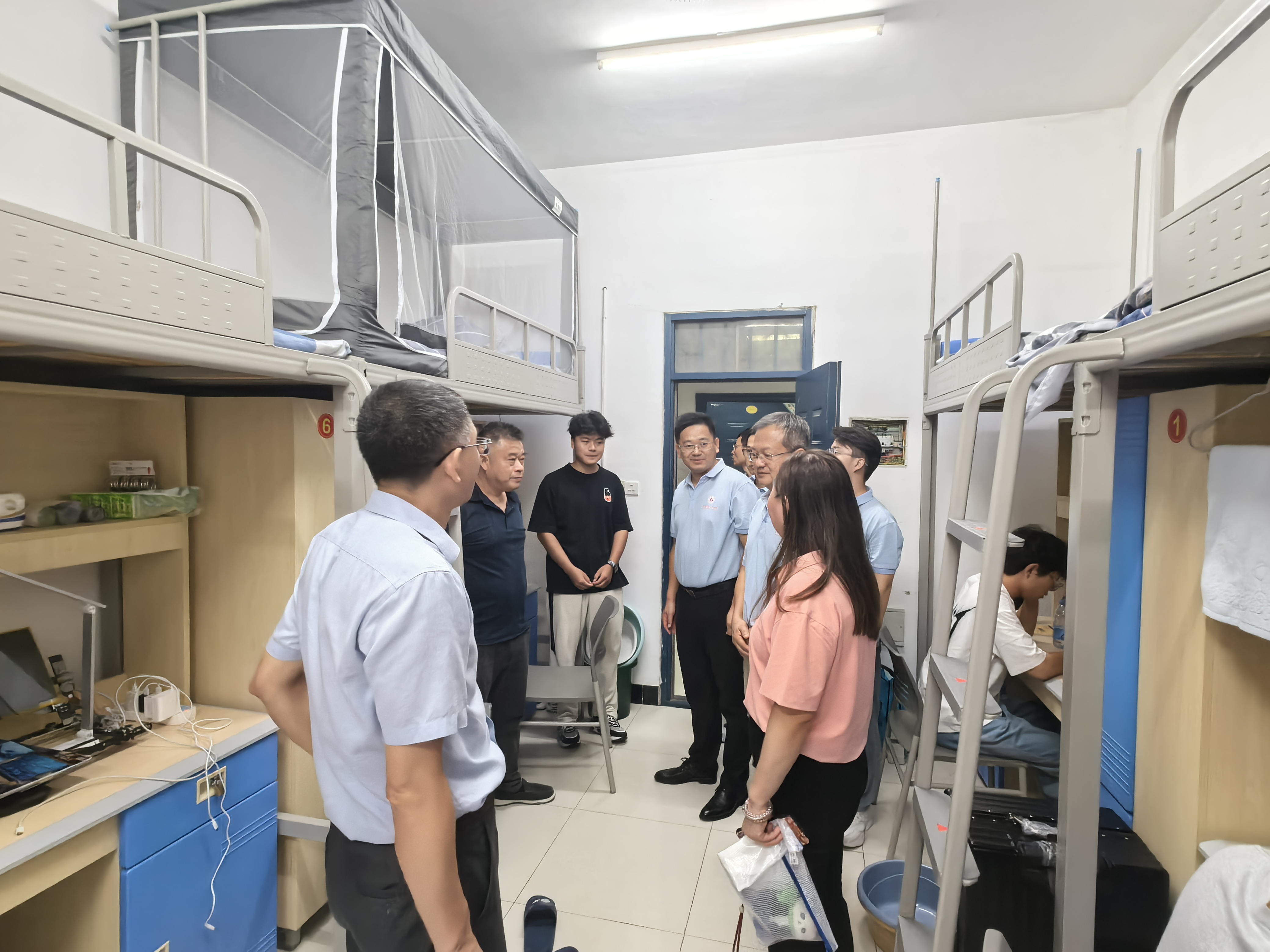 未觉三夏尽,时序已新秋。在这个丹桂飘香的收获季节,先进制造工程学院迎来了2024级全体新生。为更清楚地了解新生住宿条件和生活情况,排查宿舍设施问题和安全隐患,营造舒适安全的住宿环境,增强学生的融入感和归属感,学院党委书记杜娟、院长胡学友、党委副书记蔡灵美、副院长秦强、胡国华与全体辅导员一同走访新生宿舍。