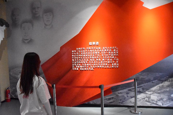 最后,展馆在一幅热烈庆祝新中国成立的油画中结尾,画面中,有五星红旗在蓝天下迎风飘扬,人们欢歌笑语,脸上洋溢着幸福的笑容,庆祝着这个历史性的时刻。回头看那段烽火连天的历史。团队成员深知,是无数革命先烈用鲜血和生命换来了今天的和平与安宁。那段历史虽然充满了艰辛与苦难,但它也铸就了不屈不挠、勇于斗争的精神。这种精神将永远激励着每一位青年学子前行,在新时代的征程中继续发扬光大。离开纪念馆时,团队成员们的心情既沉重又振奋。深知自己作为一名青年学子所肩负的责任和使命,在未来的日子里,团队成员也将把这段历史铭记于心,将其转化为前行的动力,不断追求进步和发展。