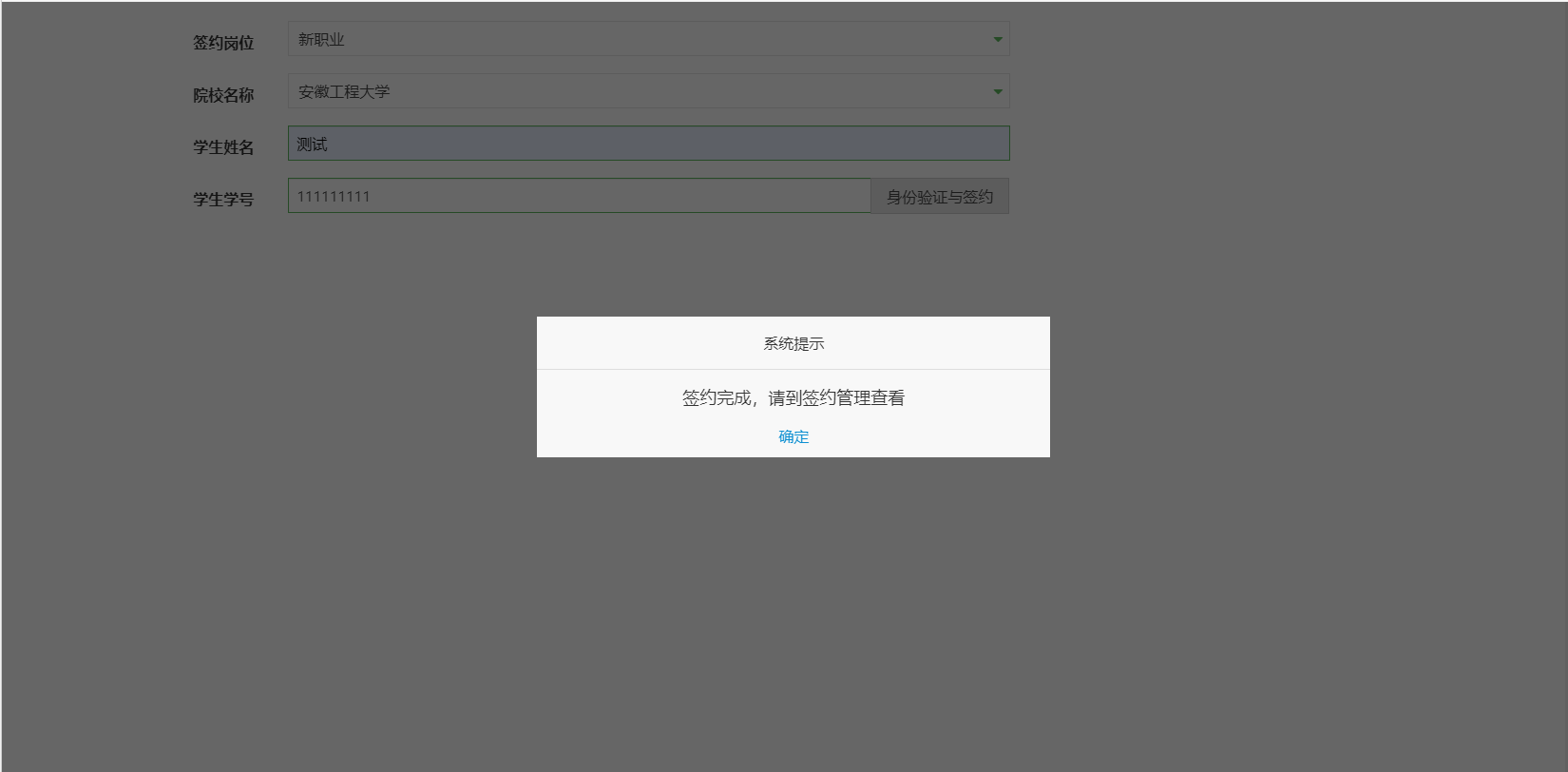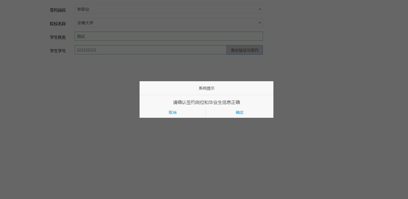 备注:在签约前请务必在“派遣”“生源信息维护”确认信息与本人信息完全一致,否则不能签约。