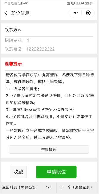 第二步、用人单位打开微信,使用扫一扫功能,扫码后,会出现填写签约信息页面;用人单位首先验证毕业生信息,确认下一步后,填写本单位基本信息和联系方式,并选择签约毕业生的工作岗位,然后点击“确认签约”后提交。
